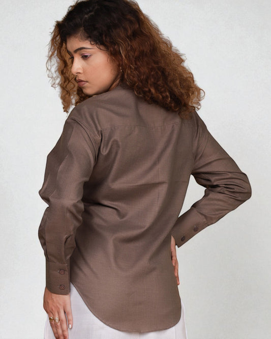 Mandarin Collar Shirt (Smoky Brown)
