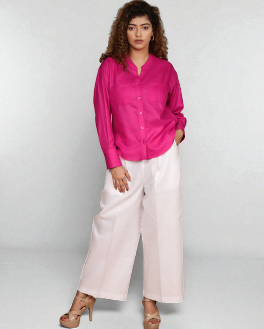 Mandarin Collar Shirt (Hot Pink)