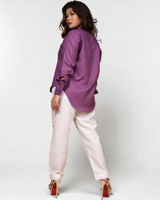 Mandarin Collar Shirt (Purple)