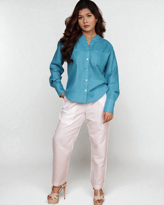 Mandarin Collar Shirt Teal