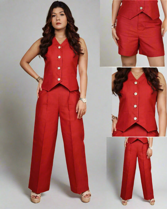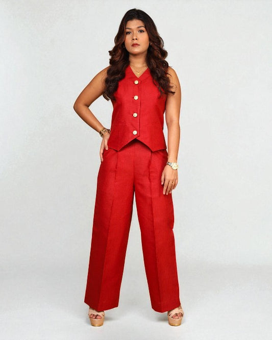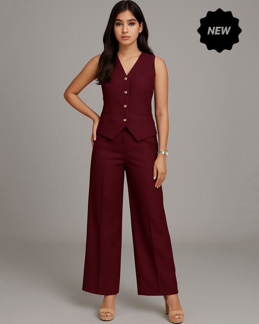 Vestro Waistcoat and Palazzo Pant 2pc Set (Maroon)