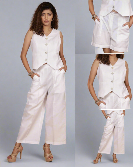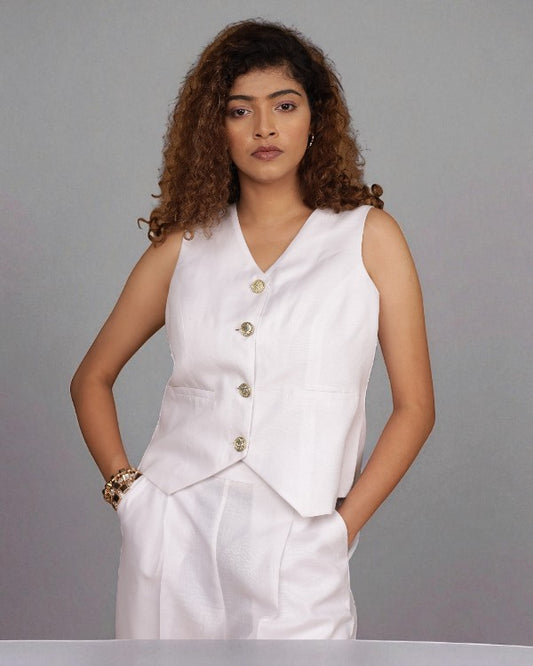 Vestro Waistcoat and Palazzo Pant 2pc Set (White)
