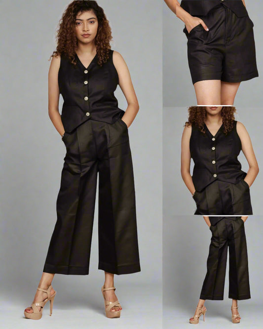 Vestro Waistcoat and Palazzo Pant 2pc Set (Black)
