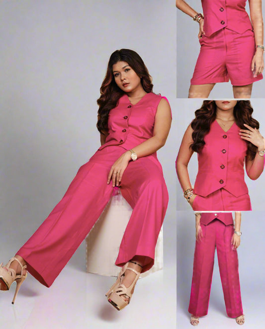 Vestro Waistcoat and Palazzo Pant 2pc Set (Hot Pink)