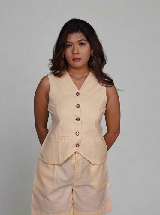 Vestro Waistcoat and Palazzo Pant 2pc Set (Beige)