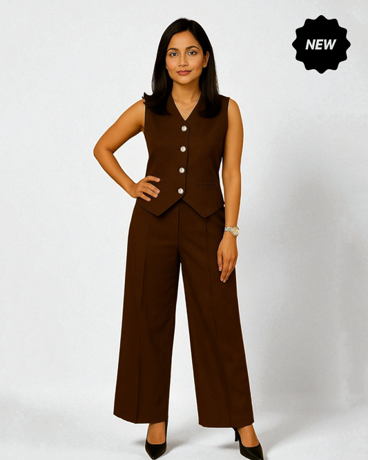 Vestro Waistcoat and Palazzo Pant 2pc Set (espresso)