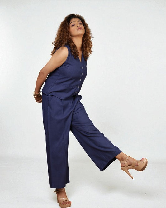Vestro Waistcoat and Palazzo Pant 2pc Set (Navy Blue)