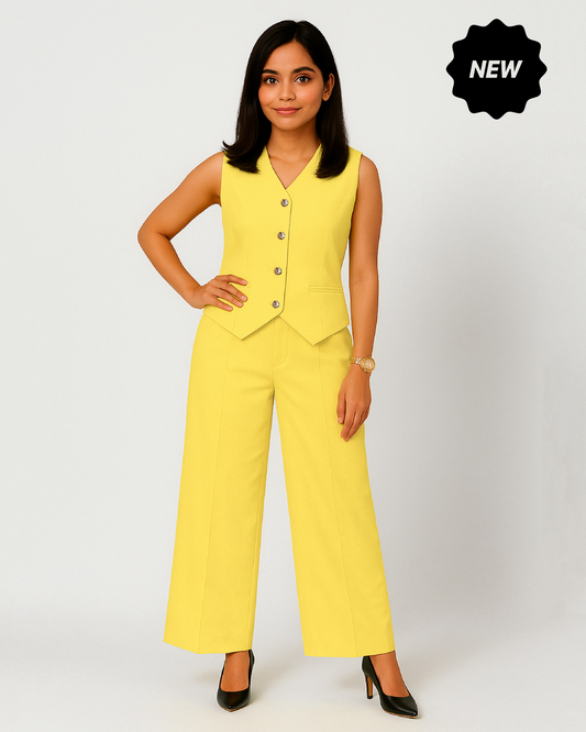 Waistcoat & Plazzo 2pc Set (Pastel Yellow)
