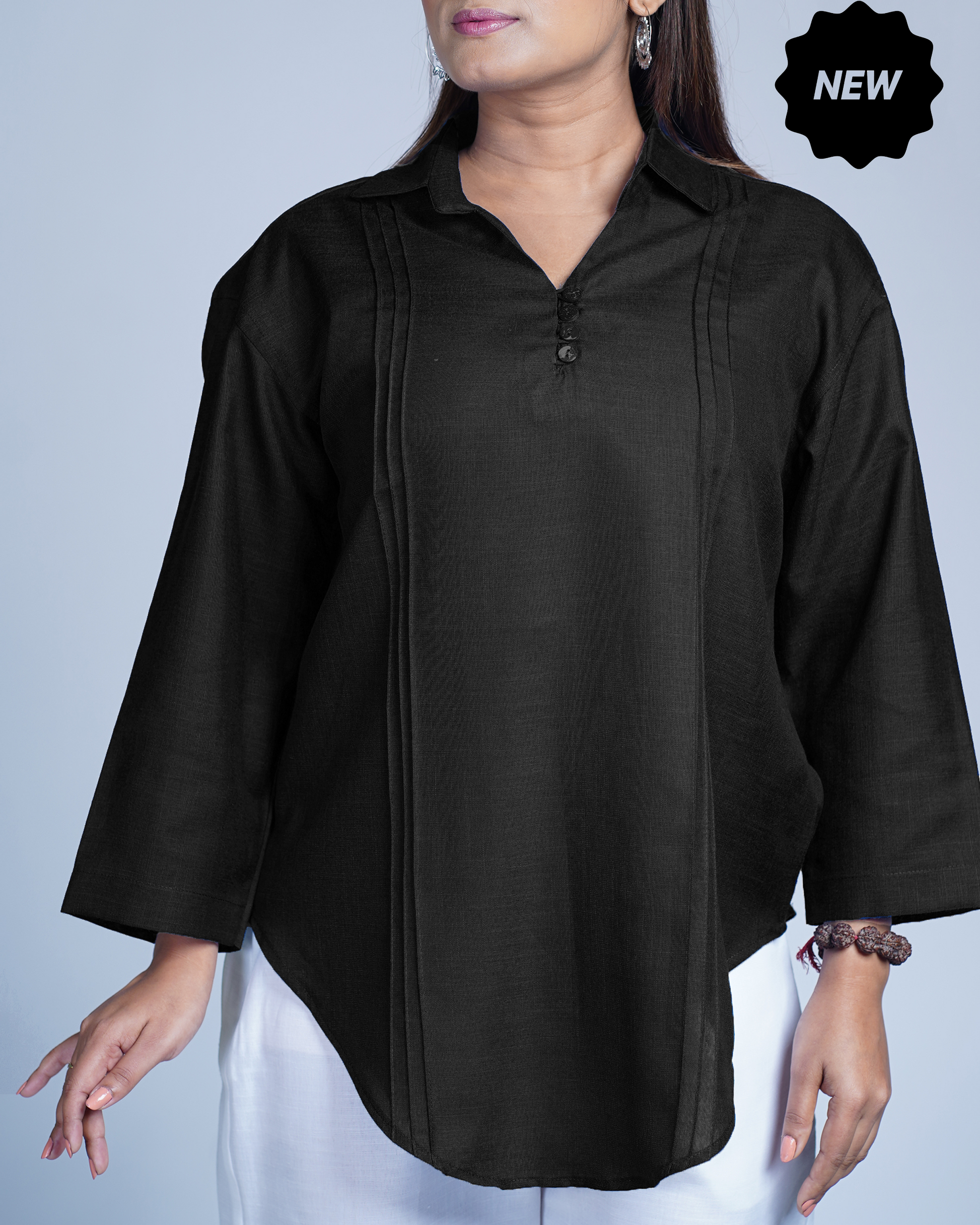 Neckline: Spread Collar with V neckline and functional loop buttons – sleek & elegant