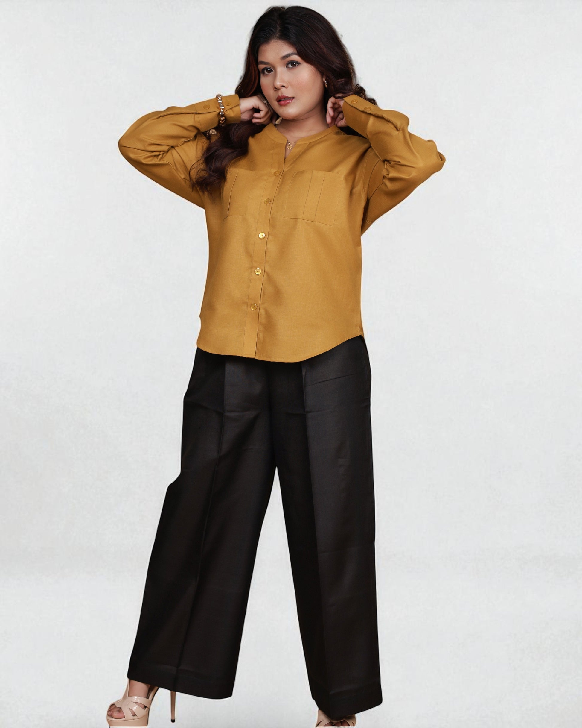 ✔ V-neck front buttoned shirt, exuding elegance and sophistication