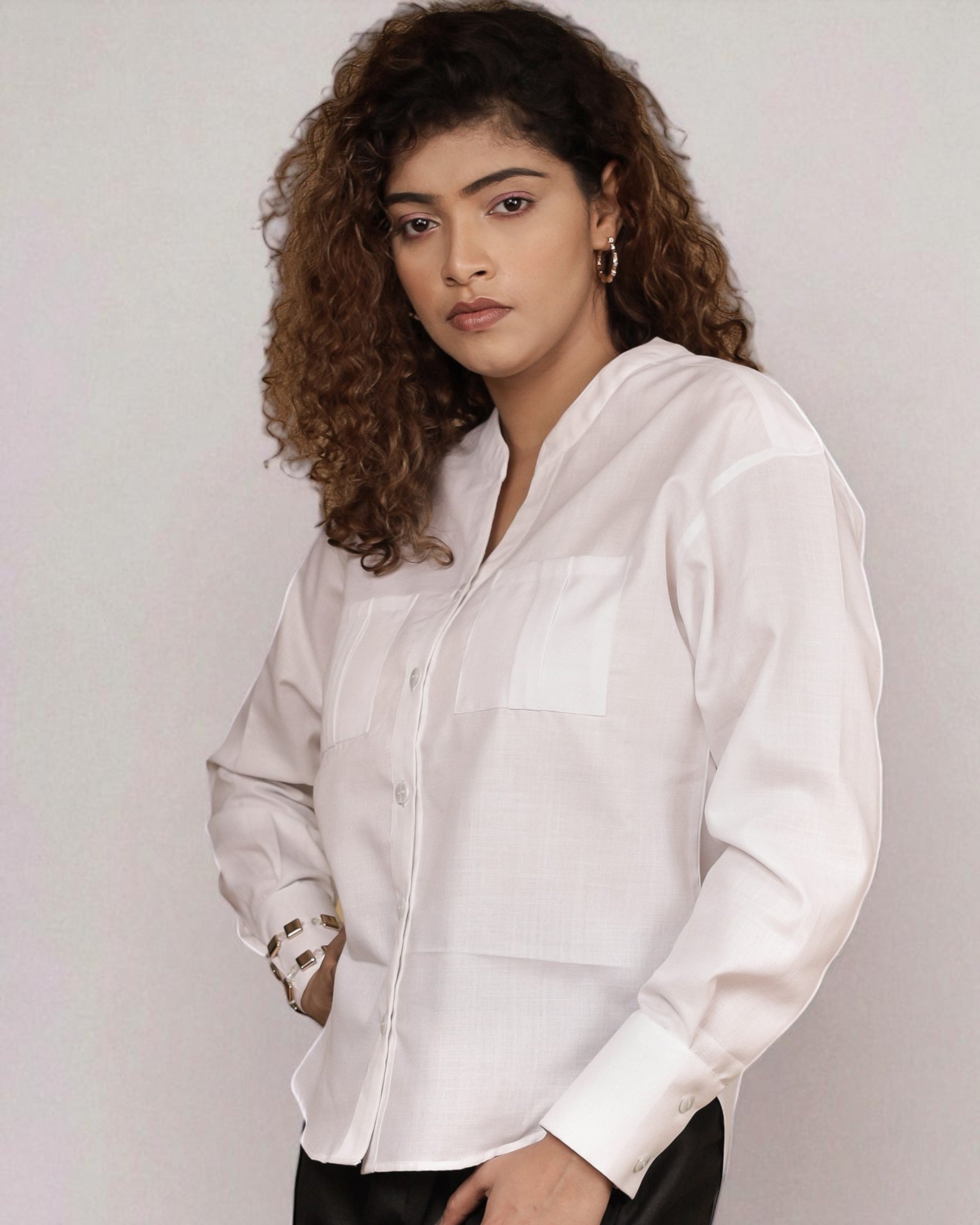 ✔ V-neck front buttoned shirt, exuding elegance and sophistication