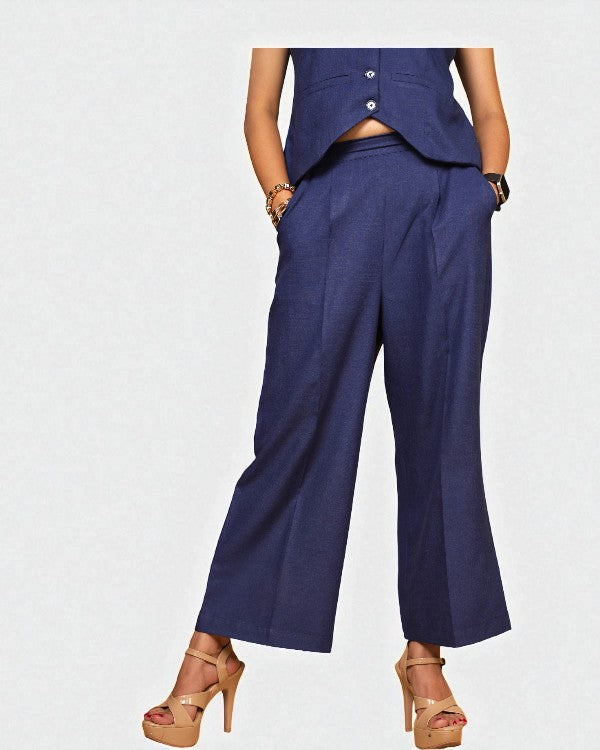 ✔ Half-elastic, half-belted palazzo waist, ensuring flexibility with a sleek finish